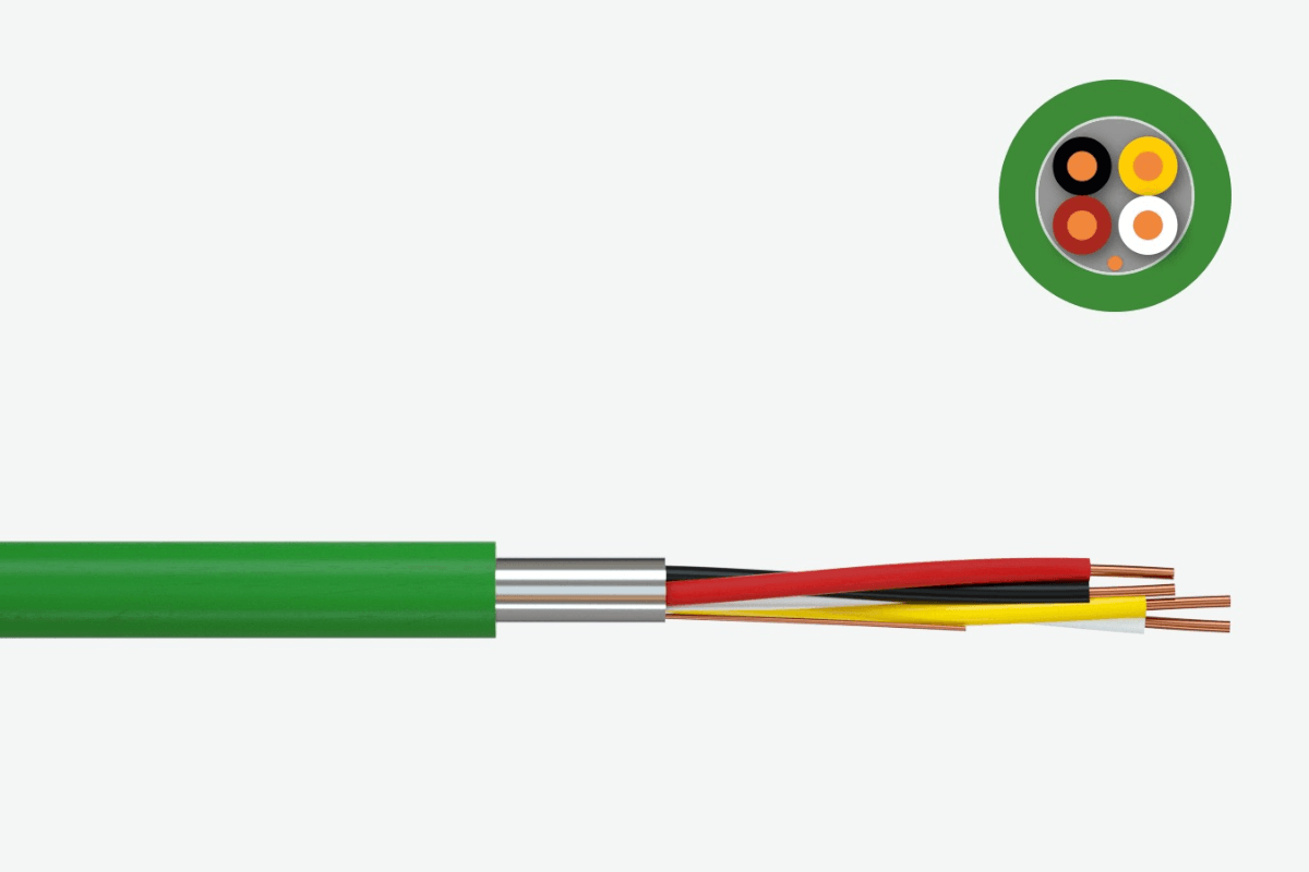 (绿色的KNX认证EIB通讯线,展示其四芯结构,通常只用红黑两芯)